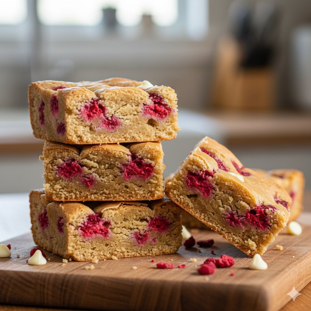 High-Protein White Chocolate Raspberry Blondies